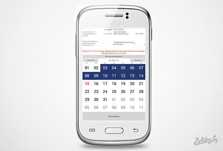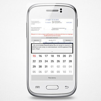 Снимок экрана мобильного приложения "Шенген-калькулятор"