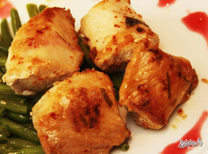 Мясо по вкусу похоже на говядину, только более жесткое. Перед приготовлением его хорошо отбили и пожарили на гриле. Подали с острым соусом и салатом.