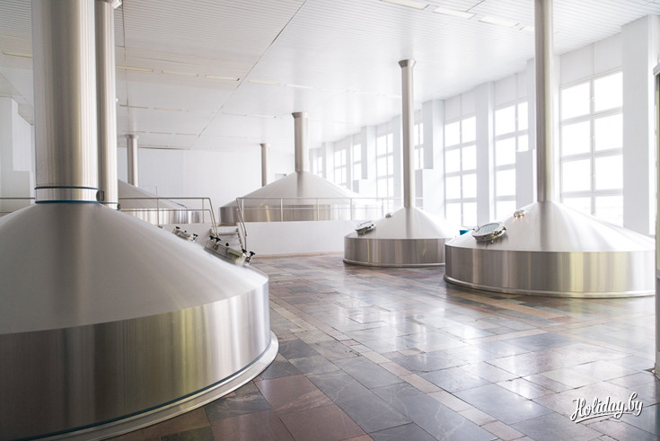 Сразу после кратного экскурса в процесс пивоварения, группу отведут в варочный цех. В помещении очень тепло и пахнет чем-то сладким. Оказалось, что это запах сусло, которое ещё не охмелено. Оно, кстати, очень полезно при простудных заболеваниях и помогает в лечении ангины.