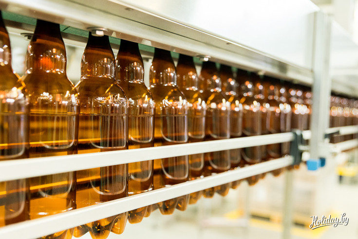 После бродильного цеха, группу поведут в цех розлива. Здесь происходит выдув и дезинфекция бутылки, налив, укупорка колпачком, после чего бутылка отправляется на нанесение этикетки, контрольного знака и даты производства. в конце продукт упаковывают пленкой и отправляют в цех готовой продукции.