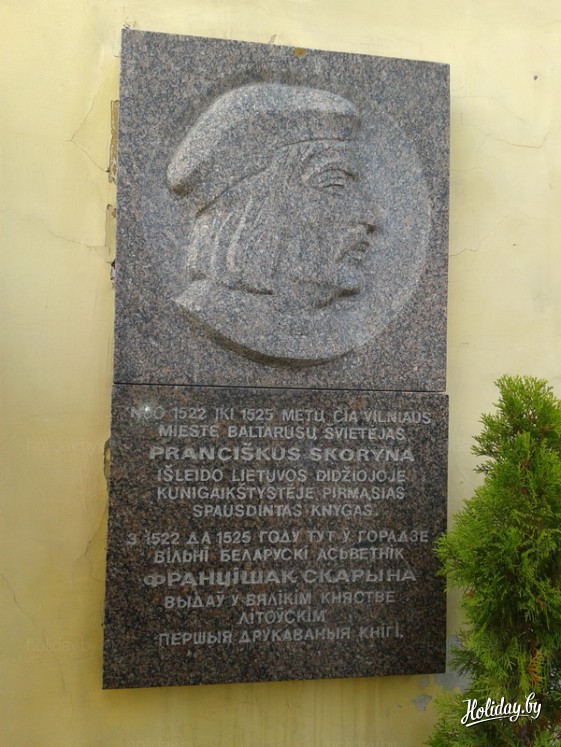 Мемориальная доска в честь Франциска Скорины на доме по улице Диджёйи, 19 в Вильнюсе.