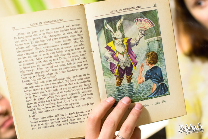 Таня: Почти сразу решили, что привозить из путешествий будем книги «Алиса в стране чудес». Самую первую нашу книгу мы нашли на блошином рынке в Голландии. После этого мы уже точно знали, что будем искать в Париже, нашем следующем городе.