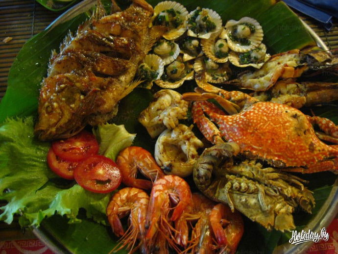 География – полезная вещь даже для самых убежденных блондинок и я опять обращаю свой взор на карту Вьетнама. Эта страна граничит на западе с Лаосом и Камбоджей, на севере – с Китаем, а с востока и юга омывается Южно-Китайским морем, в которое впадают крупные реки Хонгха и Меконг. Это я к тому, что в прибрежных районах можно найти огромное количество рыбы и морепродуктов. А что для вьетнамца важнее после риса, конечно рыба. Но у них к ней особое отношение - среднестатистический вьетнамец признает только свежую рыбу, чаще всего в жареном виде, в крайнем случае, в качестве ингредиента для рисовых блинчиком «нем» или супа с рисовой лапшой «фо». С вяленой, соленой, сушеной рыбой, которую мы так любим, они поступают жестоко: ее можно найти в меню ресторана и на столах обычных вьетнамцев в жареном виде. Есть такое у вьетнамцев блюдо как соленая и вяленая, а потом пожаренная рыба. Где ее готовят, понять очень просто по специфическому запаху, но это скорее еда для местных, а в туристической зоне предложение несколько иное. Видимо, предприимчивые вьетнамцы поняли, что туристов лучше такими запахами не отпугивать, поэтому на курортах можно найти все что угодно из морских глубин в свежем виде: это разные виды креветок, лобстеры, кальмары, осьминоги, крабы, мидии, моллюски и, конечно, огромный ассортимент рыбы. Есть привычные нам виды, такие как окунь, скумбрия, также можно отведать акулу, баракуду и угря.