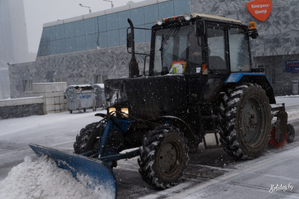 На московской выставке нашу страну представлял трактор “Беларусь” который очищал территорию между павильонами от последствий внезапно разыгравшейся снежной бури.