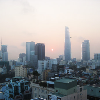 Попрощаться с Хошимином, который мне все время хочется называть Сайгон, приглашаю на смотровую площадку 17-го этажа одного из отелей. Вот он, индустриальный рассвет.