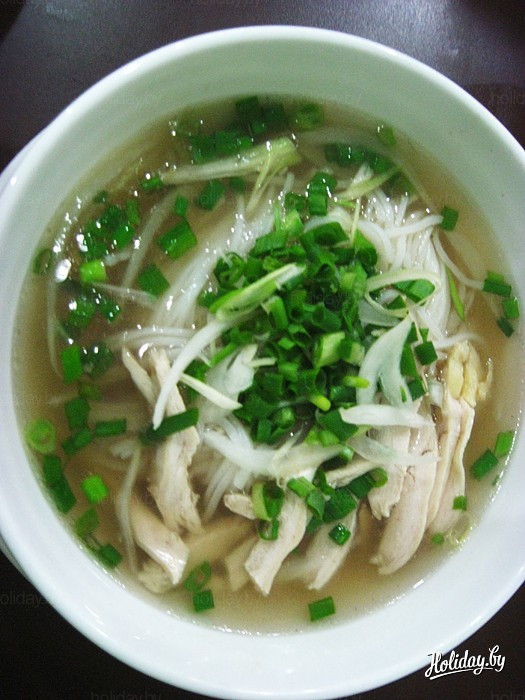Рецепт супа «Фо» совсем не сложен: мясной или куриный бульон, рисовая лапша, кусочки рыбы, птицы, свинины, говядины, бланшированные местные травы и специи. Можно добавить еще креветки, ростки сои и свежий перец чили, нарезанный кусочками. Вариантов масса. Кушать такой суп полагается палочками, а когда с твердыми частями вы расправитесь, жидкость можно выпить. Но, если вы воспользуетесь обычной ложкой, то вас никто не осудит.