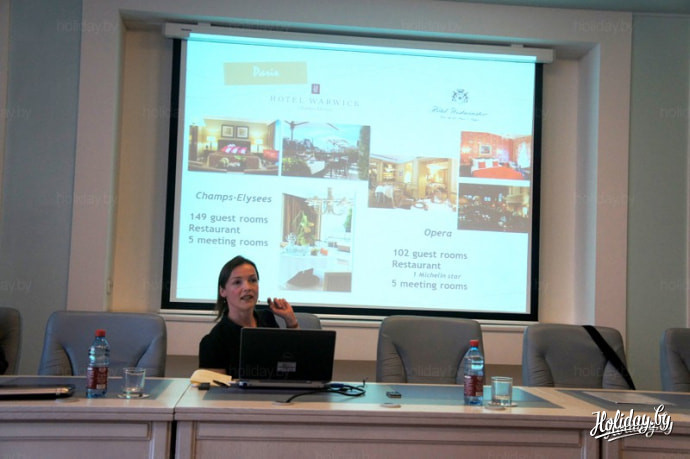 Хорошая гостиница – неотъемлемая часть запоминающегося отдыха. Поэтому «Вояжтур» выбрал для сотрудничества сеть отелей Warwick и пригласил для презентации этой компании регионального представителя Шарлотт Мартене: «Первый отель был построен в 1980 году в Нью-Йорке. Теперь по всему миру их 58. Во Франции отелей несколько, и все они отличаются своим неповторимым духом и безупречным качеством обслуживания. Поскольку фирма «Вояжтур» наш эксклюзивный партнер в Беларуси, мы гарантируем самые низкие цены на бронь номеров через это агентство».