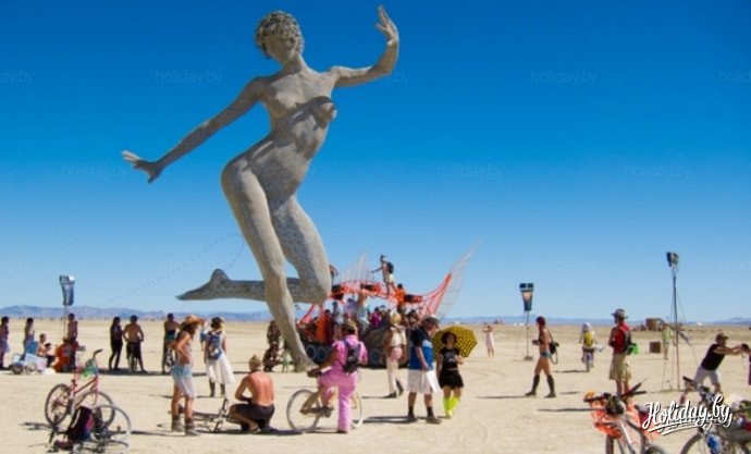 Каждый год фестиваль организовывается под определенную тематику, что дает возможность удивить даже постоянных гостей пустыни. А их может к концу недели набирается до 47 000 человек! Ну и в последний день фестиваля, уже после того, как воздвигнутый город ровняют с землей, сжигают символическую статую человека. Вокруг костра танцуют под звуки барабанов, что еще больше отдаляет от реального мира.