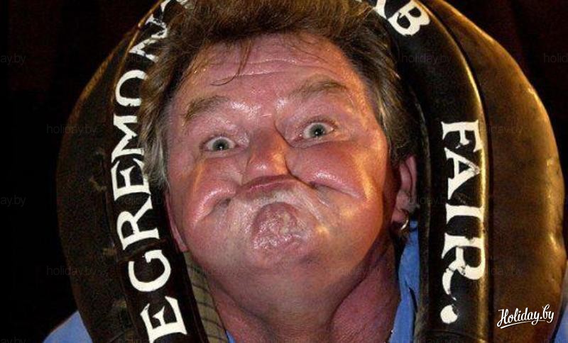 Чемпионат мира "Самая страшная гримаса". Даже интеллигентные англичане способны вытворять что-то нестандартное. Вот говорят про этот народ: "Снобы, снобы", а они то соревнуются в лучшей гримасе, значит, не боятся пошутить над собой. Маленький английский город Эгремонт каждый год как магнит притягивает самых раскрепощенных. Отчаянные люди даже зубы себе удаляют, в надежде на победу. «Во дурные» - думаете вы. И зря! Ведь Питер Джексон, который именно так и сделал, выигрывал неоднократно. Надеюсь, что в качестве приза, ему не подарили ящик грецких орехов.