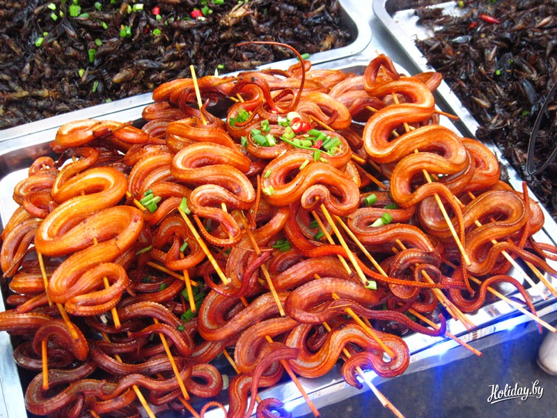 Если вы не упали в обморок после знакомства с жареными земноводными, усложним задачу: жаренные во фритюре кузнечики, пауки-птицееды и копченые змейки.