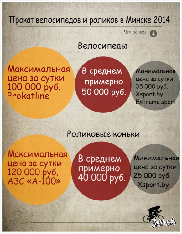 Наконец-то наступает долгожданная пора светлых вечеров, ярких звездных ночей, воздушно-легкой обуви и, конечно же, долгожданных велосипедов и роликов. Профессионалы со стажем уже расчехлили своих многоколесных любимцев и с удовольствием стремительно рассекают встречный ветер, обгоняя ворчащих пешеходов. Если вы до сих пор не умеете кататься ни на чем кроме санок, значит, наступило самое время бежать в ближайший пункт проката и приступать к обучению. Не важно, сколько вам лет, и какая у вас профессия. Непростое увлечение ставит на один уровень матерого бизнесмена и любопытного школьника. Holiday.by поможет вам выбрать правильный велосипед и роликовые коньки для новичков, расскажет о технике безопасности и укажет места, где вы с легкостью сможете приобрести свое первое снаряжение.