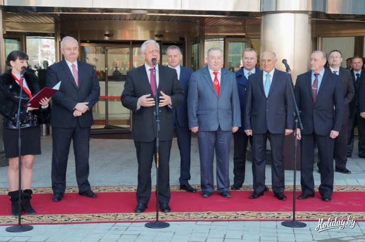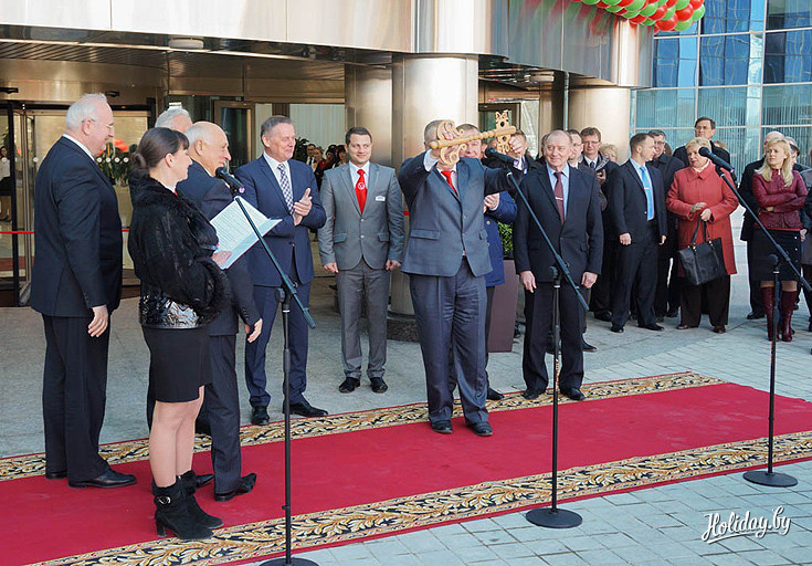 Во время церемонии открытия премьер-министр Беларуси Михаил Мясникович поблагодарил руководство отеля, городские власти и белорусских рабочих за оперативную и качественную работу: «Это была непростая стройка, уже по ходу строительства пришлось менять исполнителя. Потому что российский инвестор оказался не в состоянии выполнить свои обязательства, и нам пришлось привлечь городские силы. Считаю, что мы успешно справились с поставленной задачей», - сказал Мясникович.