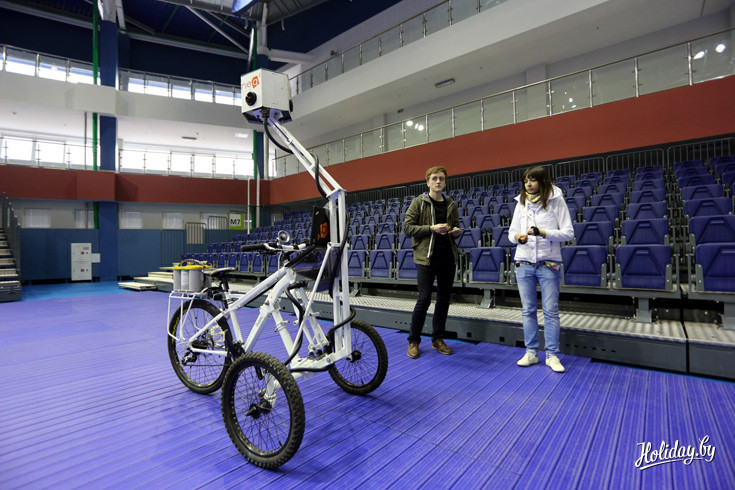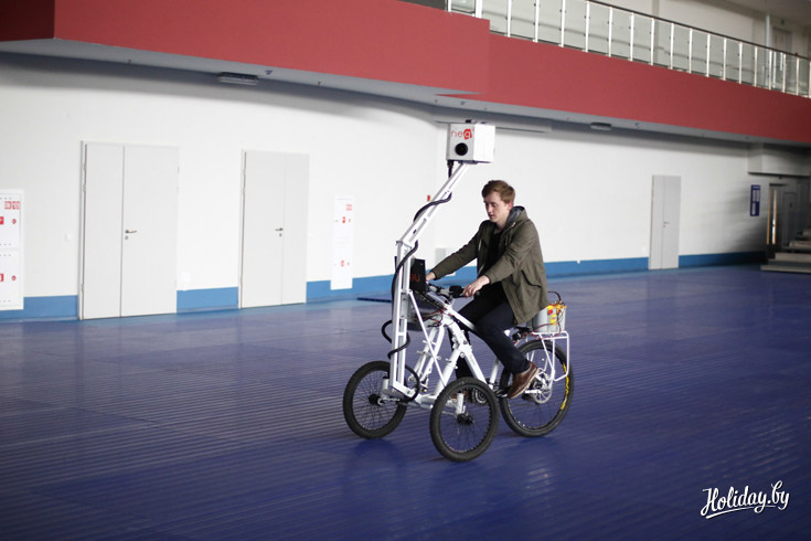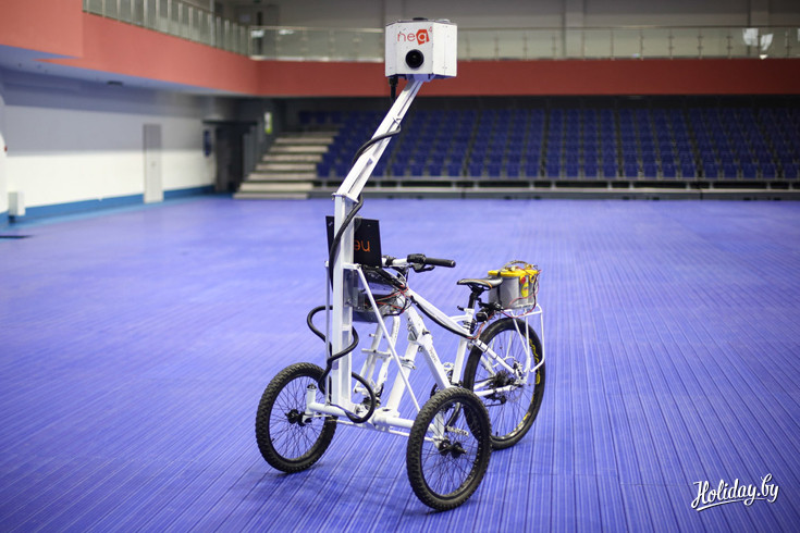 Недавно Яндекс завершил панорамную съемку хоккейных объектов Минска. В частности, для яндексовских Карт отсняли «Чижовка-Арену». С помощью специального трехколесного велосипеда, на котором установлено оптическое оборудование, были сделаны панорамные снимки внутри и снаружи спортивного комплекса. Байк выполнен по спецзаказу: в отличие от обычного трицикла два колеса в нем расположены в передней части, чтобы велосипед не кренился при поворотах, а камера всегда была вертикально поверхности земли.