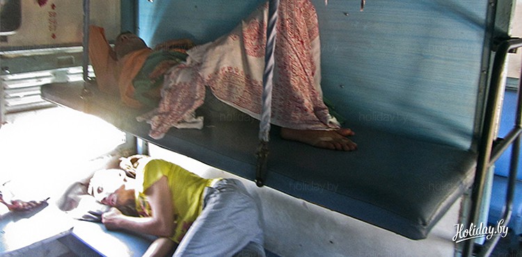 Еще в поездах Индии во время движения не закрываются двери. И это действительно неописуемо здорово, потому что во время поездки виды открываются невероятно красивые, и можно, удобно устроившись в проходе, ехать и смотреть, что происходит вокруг. Кстати, если выбираете вагон класса 3AC или 2АС (это все еще белорусские плацкарты, только с кондиционером и окнами со стеклами), то можно выходить в тамбур греться, поскольку из-за хорошо работающих кондиционеров в вагоне достаточно холодно. Билеты в такой вагон стоят около 20 долларов за сутки поездки, хотя все зависит от расстояния. И здесь никто и никогда не будет висеть у вас надо головой и душой, потому что класс повыше и вокруг должен быть порядок.