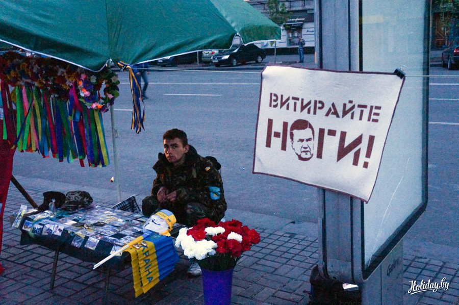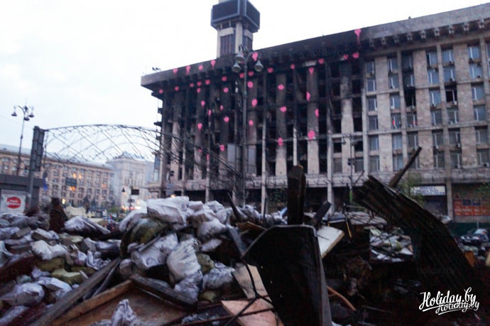 Центр города усеян гвоздиками портретами, иконами и свечами. Киевляне приносят свежие гвоздики каждый день.