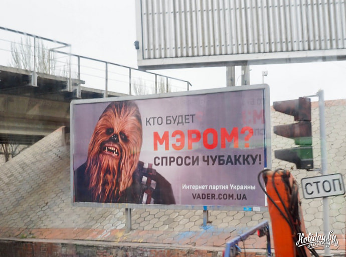 Одесса-мама покорила политическими плакатами. Нам удалось насчитать 5 плакатов с чубакой и это только в центре города.
