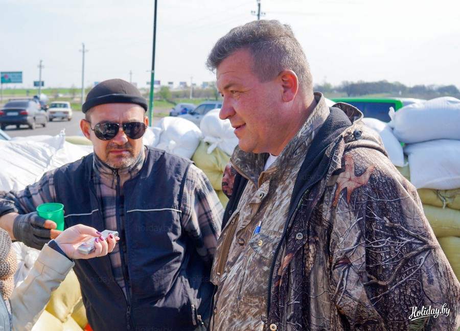 На посту можно встретить разных людей. К примеру, строителя Михаила и лесоруба Мишу. «Не было ещё такого, чтобы украинец грабил белорусов!», - заявил Михаил, когда узнал, что наши туристы бояться ехать. «Мы белорусов очень любим!», - поддержал его Миша.