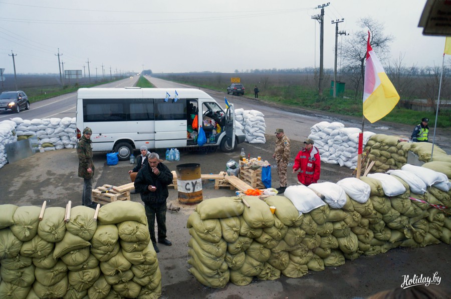 В 7 километрах от Одессы мы заметили блокпост, на нем работали милиционеры и добровольцы. В первый день поездки на посту оказались студенты, которые недавно прибыли из Киева. Они рассказали, что проверяют лишь автобусы и подозрительные машины. Причем право останавливать транспорт имеют только сотрудники милиции. Узнав, что в автобусе туристы из Беларуси, нам пожелали хорошей дороги и не стали проверять.