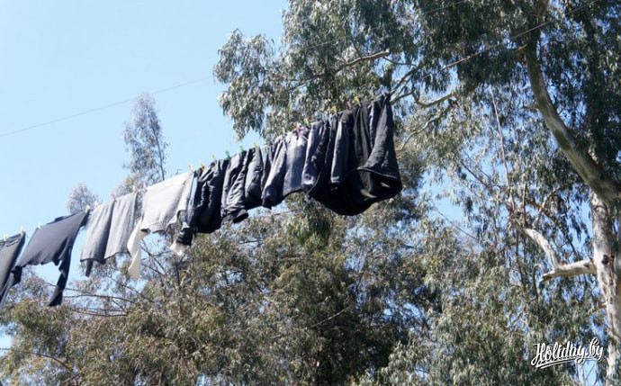 Аккуратно натянутые бельевые веревки, разноцветные рубашки, колготы и юбки…