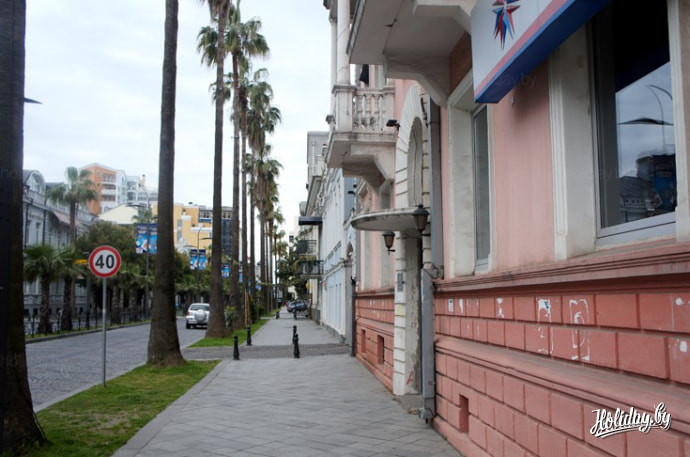 Высокие пальмы, высаженные как под линейку - не редкость для Батуми