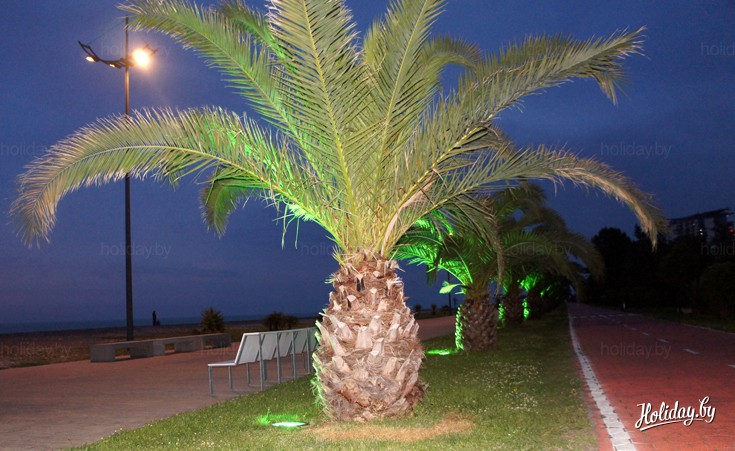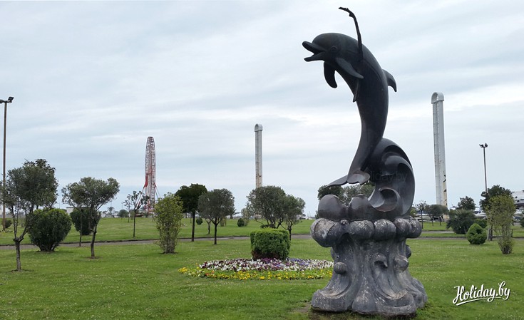 Пальмы в Батуми растут везде. Они есть на Старом бульваре, в парке имени 6 мая и вдоль набережной. Мало кто знает, но все эти деревья – привезенные. Сейчас они прижились, и прекрасно себя чувствуют. Вечером пальмы подсвечиваются, а днем – используются туристами в качестве экзотического фона. Буквально пару лет назад символом города считался именно дельфин с пальмой. Сейчас символ поменялся. Им стал мальчик с дудочкой в руках.