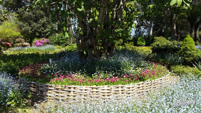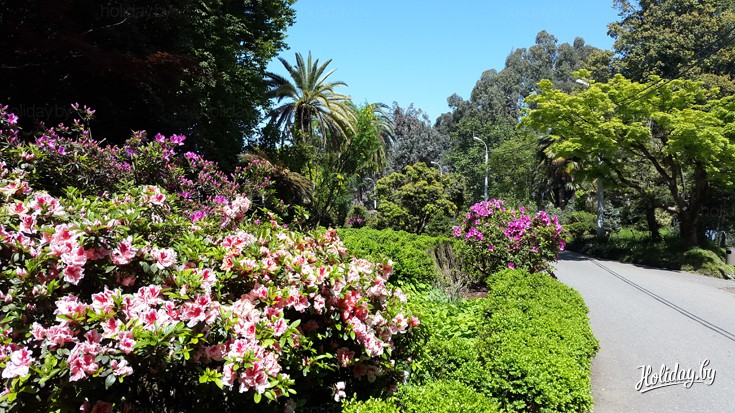 Пальмы, кедры, 120–летний эвкалипт и ложнокамфорный лавр, а также бамбук, маргаритки и дуб из Японии с забавным названием «Мирзинолистный» – это лишь часть тех культур, которые есть в этом райском уголке. К слову, эвкалиптов в Ботаническом саду более 30 видов. Некоторые из них часто называют «Бесстыдницами», потому что у них постоянно опадает кора. Иногда их величают также деревьями-насосами. Все потому, что за день такой эвкалипт выкачивает из грунта до 500 литров воды. В сезон по предварительной договоренности посетители Ботанического сада могут попробовать фрукты и чистую питьевую воду, к которой их заботливо выведут таблички spring water.