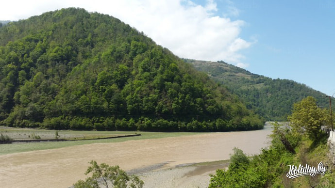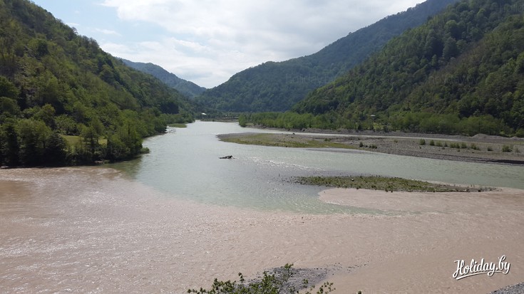 Во время путешествия по окрестностям Батуми, кроме моря нам также удалось увидеть две красивейшие горные реки Чорох и Аджарисцкали. Последняя, кстати, приток реки Чорох. Именно поэтому у туристов есть возможность увидеть необычное слияние этих чистейших вод коричнево-голубого цвета. У самых активных, кстати, есть возможность заниматься йогой прямо на берегу. Главное попасть на хорошую погоду.