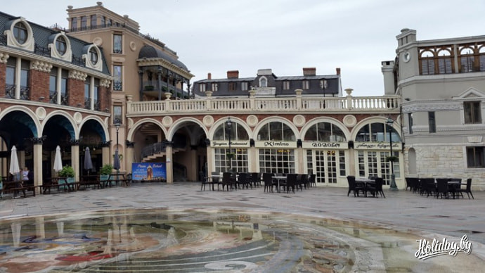 И это еще не все…. Как рассказал нам экскурсовод, весь Батуми был отстроен приблизительно за 10 последних лет. Не исключением в этом активном архитектурном воплощении стала и площадь Пьяцца. Ее по праву можно назвать одним из самых красивых мест города. По своему внешнему виду она напоминает итальянскую архитектуру. Здесь есть бутик-отель на 16 номеров, рестораны, паб и кафе. В архитектуре этого милого места умело использованы мозаика и витражи. В сезон здесь всегда звучит живая музыка, и нередко можно встретить знаменитостей.