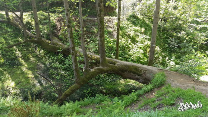 К слову, нетронутость природы чувствуется здесь повсюду. Самые любопытные туристы сразу заметят необычное дерево-мост. Дерево так и называется «тюльпановое». Оно упало от сильного ветра еще 29 лет назад и с тех пор превратилось в мост, созданный самой природой.