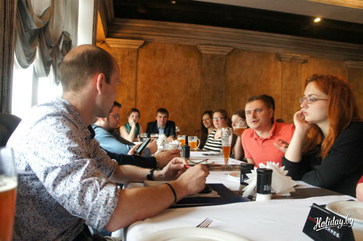 Ух, и просторно же здесь. Ух, и высокие же потолки. Да так чисто и по-ресторанному аккуратно сервировано, что все даже немного протрезвели от смущения. Но ситуацию живо исправили. Серьезные официанты быстро подали нам прекрасный «Эль» и как-то очень скоро стало уютно и комфортно. Если без шуток, «Эль» здесь действительно хорош! Его положительно оценили почти все собравшиеся. За столом каждый смог высказать свое мнение. Евгений внимательно выслушал наши советы и пожелания. Holiday.by поинтересовался мнением некоторых первоиспытателей лично.