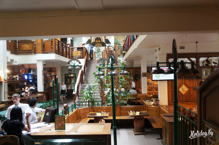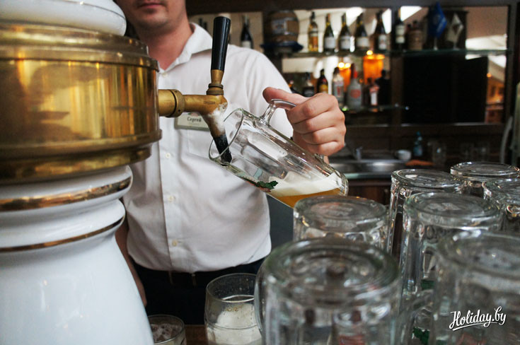 Но, собственно, пиво. Нам предложили два сорта. Светлое «Процентное» и «Рубиновое». Вообще посетители в этом месте могут отведать семь разных сортов янтарного напитка. Все технологии приготовления иностранные. Из белорусского – только вода. Директор заведения Ирина Шерементова поделилась своими мыслями с Holiday.by по поводу традиций употребления пива в нашей стране: «Я считаю, что белорусам обязательно нужно учиться правильно пить пиво. Сразу опустошается половина бокала, через некоторое время выпивается третья часть и можно немного подождать прежде, чем сделать последние пару глотков. Пиво следует пить быстро. Чем дольше оно стоит, тем меньше оно ценится. К сожалению, наши люди не верят, что у нас вообще может быть что-то хорошее. Конечно, многие думают, что и пиво мы варить не умеем. Мы предлагаем прийти и удостовериться в том, что это все стереотипы. Нельзя утверждать, пока не попробуешь. У нас итальянское оборудование, немецкие продукты, почему же наше пиво должно быть хуже иностранного? В будущем планируем предлагать и новые сорта. Например, в конце мая у нас появится английский «Эль».