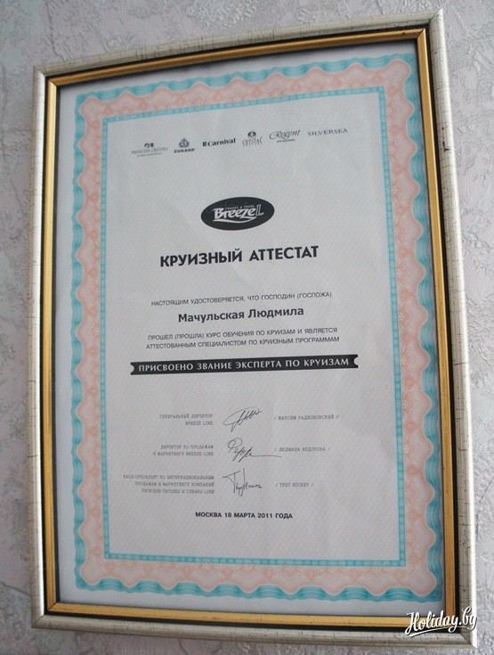 – Да, к тому времени только несколько фирм занимались паромами. Меня переполняли эмоции еще до восхождения на борт, а уж после того, как я проплыла на пароме, мне, да и моим туристам, которые были вместе мной, стало совсем понятно, что это именно то, что нужно белорусам. Цена была доступной, а впечатлений морское путешествие приносило невероятно много. «МАТЭП-90» занимался очень плотно такими турами до 2011 года. В какой-то момент я снова поняла, что пора идти дальше. Одна круизная компания неожиданно прислала мне приглашение в рекламный круиз. Я подумала, что это очень интересно, и решила отправиться в путешествие. И тут в это же время совсем скоро мне приходит предложение от другой компании отправиться на трехдневный семинар по морским круизам. Я решила, что второй вариант будет мне намного полезнее и отправилась туда. Вначале, конечно, в голове была полная каша: разные компании, разные лайнеры, разные цены – целый калейдоскоп! Но мне удалось ответить на все тесты и получить круизный аттестат эксперта по круизам. Я поняла, что мне нравится эта новая сложная, но такая интересная тема, и я обязательно буду продавать круизы.