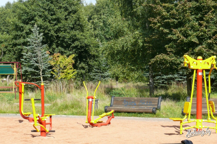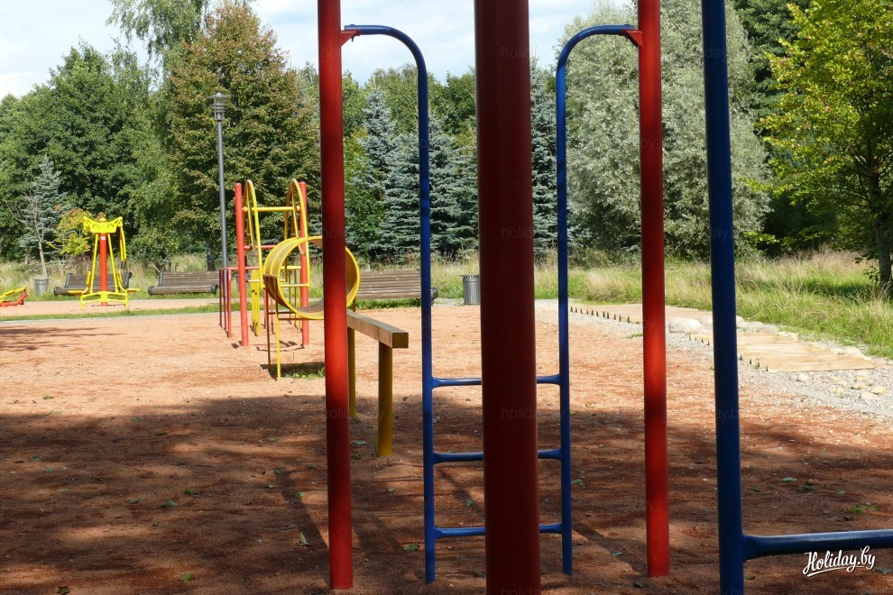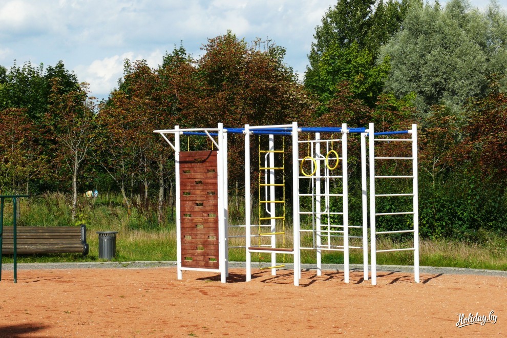 В парке много оборудованных площадок для отдыха и подвижных игр.