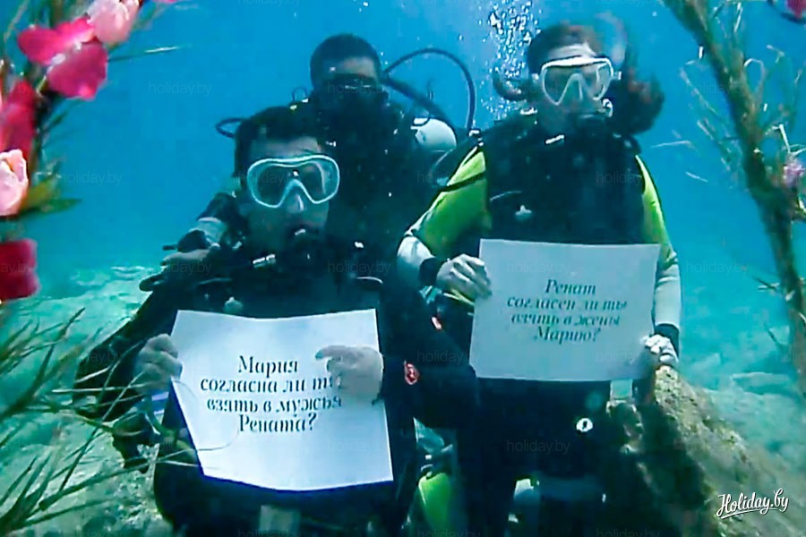 Beleon Tours также благодарит за помощь московский салон свадебной и вечерней моды «Wedding Rooms» предоставивший свадебные наряды для невест, Calypso Diving Center, Grecotel White Palace, ресторан Avli и винодельню Manousakis Winery.