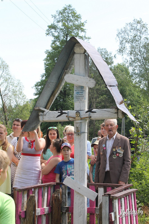 Пасля наведвання музею ўсе госці збіраюцца каля драўлянага крыжа, які таксама зрабіў Тарасюк. Сакральны знак усталявалі 8 траўня на дзень народзінаў Мікалая Васільевіча. Сёння запрошаны праваслаўны святар асвячае гэты крыж, а сам гаспадар не можа стрымаць слёз.