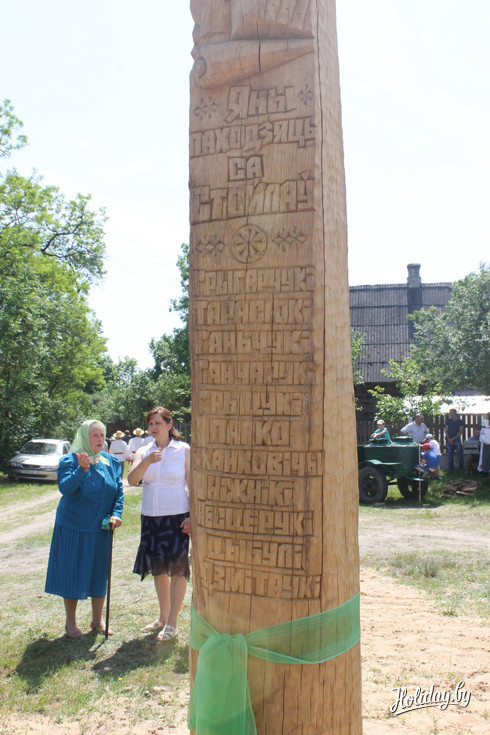 З’явіўся ў Стойлах і яшчэ адзін адметны знак – пяцімятровы дубовы крыж, выкананы кобрынскімі рэзчыкамі па дрэву Уладзімірам Чыквіным і Вячаславам Дароцька. На гэтым крыжы выразаны прозвішчы тых, хто паходзіць з вёскі Стойлы.