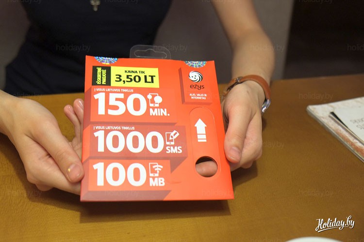 Мы приобрели сим-карту всего за 3,50 литов (1.38$). По этой цене предоставляется 150 минут разговора, 1000 смс и 100 мегабайт интернета. Есть и более дорогие тарифы, где, разумеется, возможностей будет большее. К симке прилагается буклет с инструкцией по активации и основным операциям на литовском, английском и русском языках. Как только вы собрались обратно домой, карту можете выбрасывать, так как карта через некоторое время просто отключается автоматически.