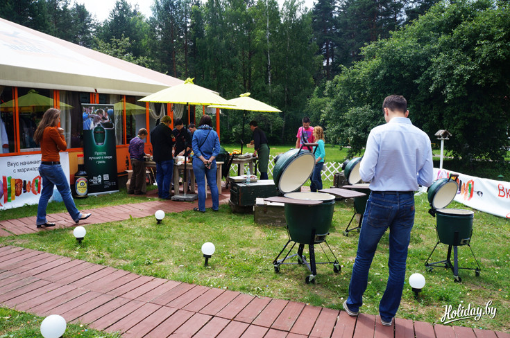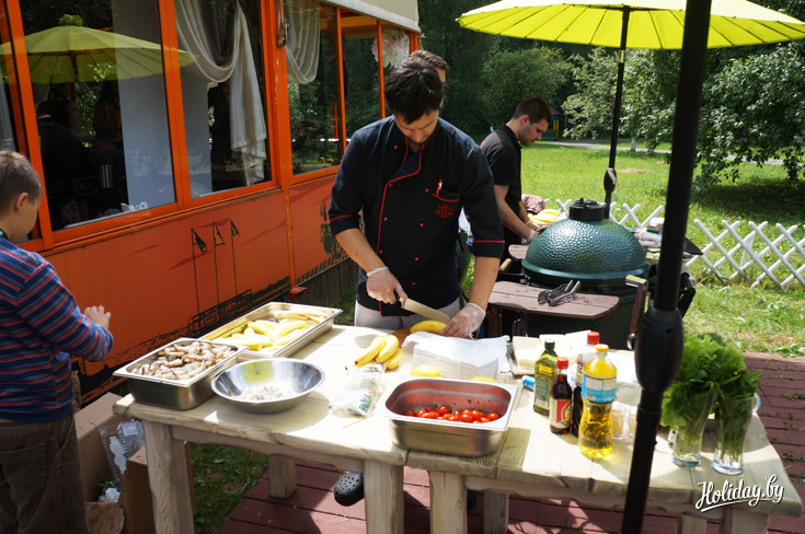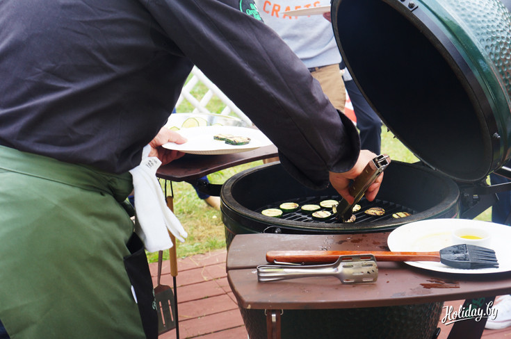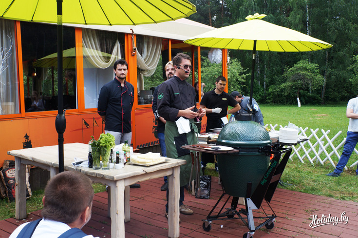 А на улице тем временем вовсю готовились к барбекю. Приготовить мясо, морепродукты, сыр и даже десерты на гриле здесь предстояло с помощью «Big Green Egg» («Большого зелёного яйца») – американского керамического гриля.