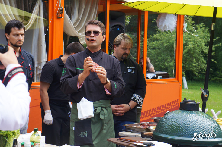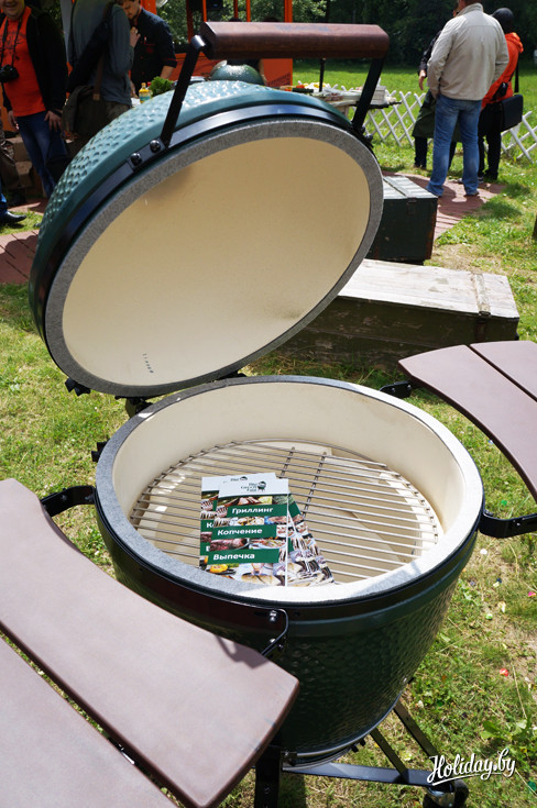 Его представитель из России Леонид Иванов рассказал о многих преимуществах этого приспособления. Например, керамический гриль хорош тем, что вся влага, выделяемая продуктом, оседает на самом холодном месте внутри этого внушительных размеров яйца. А самое холодное место – это и есть сам продукт. Тем самым, мясо при готовке не высушивается, и, как сказал Леонид, нужно очень постараться, чтобы испортить блюдо, готовя в этом гриле.