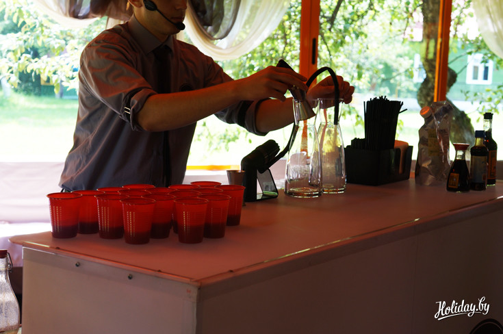 Также в баре подавали освежающие напитки и отвечали на вопросы от зрителей, однако, не выдавая тайны приготовления своих фирменных коктейлей.
