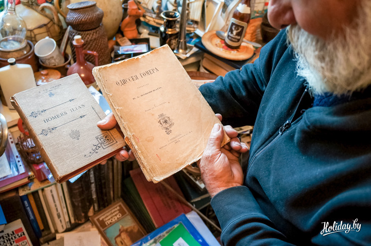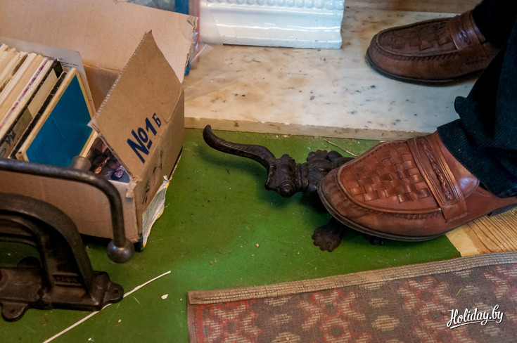 Только с первого взгляда кажется, что в этом нет системы. Проходит десять минут, и ты "врубаешься" в микро-темы каждой кучки вещей и не стесняешься сам доставать интересную книгу, рассматривать клейма на посуде или пробовать снять ботинок при помощи специального приспособления. Владелец-экскурсовод как бы в противовес своим официальным коллегам говорит "Вот, возьмите, подержите!", "Ну, вот прочитай, что здесь написано..."
