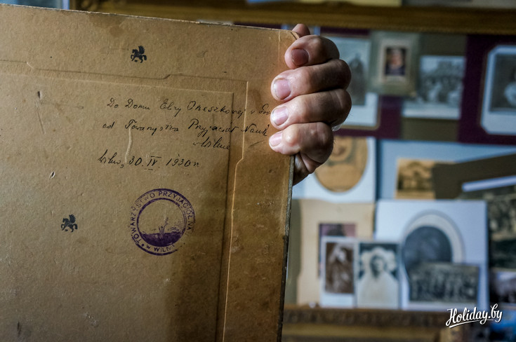 Сперва с опаской, а потом с уверенностью ты берешь экспонаты. Через руки за час проходят столетней давности глянцевые журналы, клизма для знатных особ, военная каска, сигнальный рожок, в который можно дунуть, нижнее белье, расписание поездов 1941 года и коробочка с диафильмом как в детстве. На секунду кажется, что история Гродно и окрестностей сжалась и подступила к тебе настолько близко, настолько "три дэ", что дух захватывает. Здесь нет длинных предысторий, хронологии и идеологии - блюдца, картины, подарки, записки, шторы, карты, сапоги, фотоаппараты, открытки, которые писали какие-то люди друг другу.