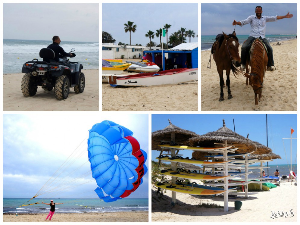 Тунисские пляжи отлично подходят для отдыха с детьми, ведь вход в воду пологий и ровный. Понравятся пляжи и взрослым. Ведь отдельно платить за лежаки и зонтики не нужно. Кроме того, их здесь достаточное количество, поэтому туристам не обязательно бежать на пляж ранним утром и занимать лежак своим полотенцем. Единственное, на что все же придется потратиться туристам, выбирающим отдых в 3* отелях, так это на матрас для лежака. Цена матраса – около 2 динаров в день (чуть больше $1).