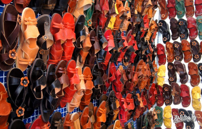 Не стоит удивляться, если продавец будет вам мило улыбаться, а потом схватит за руку и поведет в свой бокс. Тут главное не обмануться. Ценник, который вам предлагает услужливый продавец лучше разделить минимум на два. Так, шлепанцы из кожи верблюда стоят от 5 до 10 динар (от $3 до $6). По незнанию несколько туристов из нашей группы купили их за 20 динар ($12). Внимание к покупателю, безусловно, приятно. Ведь вам не только предложат разную цветовую гамму и фасон, но настойчиво уговорят примерить будущее приобретение, заботливо посадят на стул и помогут надеть обувь.