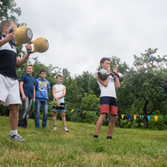 На открытии тропы присутствовали педагоги близлежащих школ с учениками. Тренер Александр Николаевич в день открытия привел своих подопечных, которые поочередно соревновались в поднятии гири.