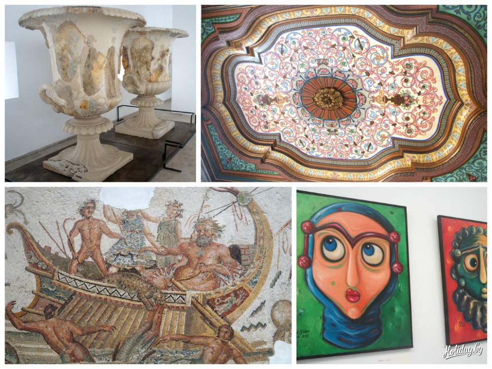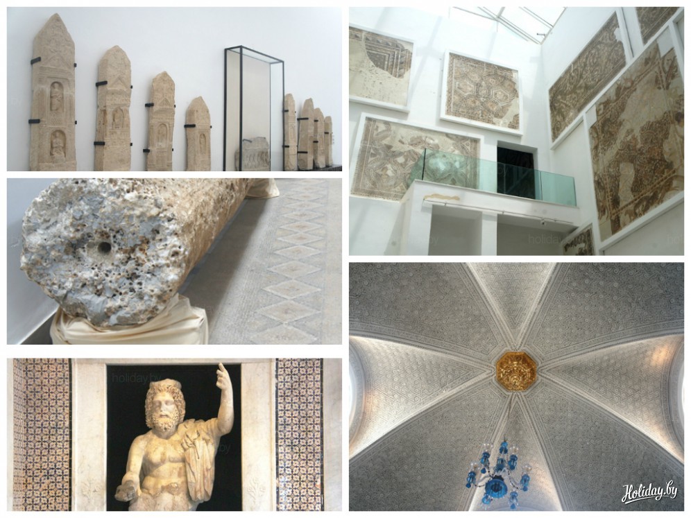 В музее Бардо вы также увидите предметы времен Древней Греции. Например, добротные высокие кровати и необычные деревянные стулья. Практически в каждом зале есть роскошная люстра, колонны и своды с необычным орнаментом и мозаика на стенах.