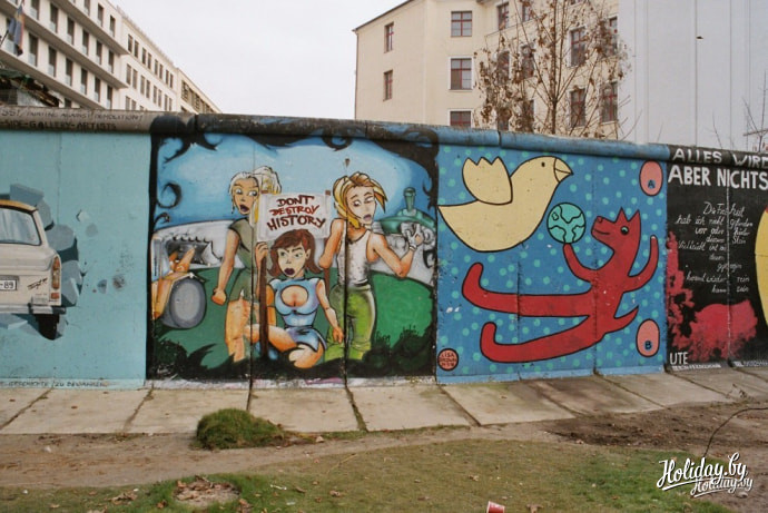 Это уникальная галерея на открытом воздухе по сути представляет собой часть Берлинской стены. Сейчас прямо на стене можно посмотреть работы более чем 100 художников из разных стран мира.