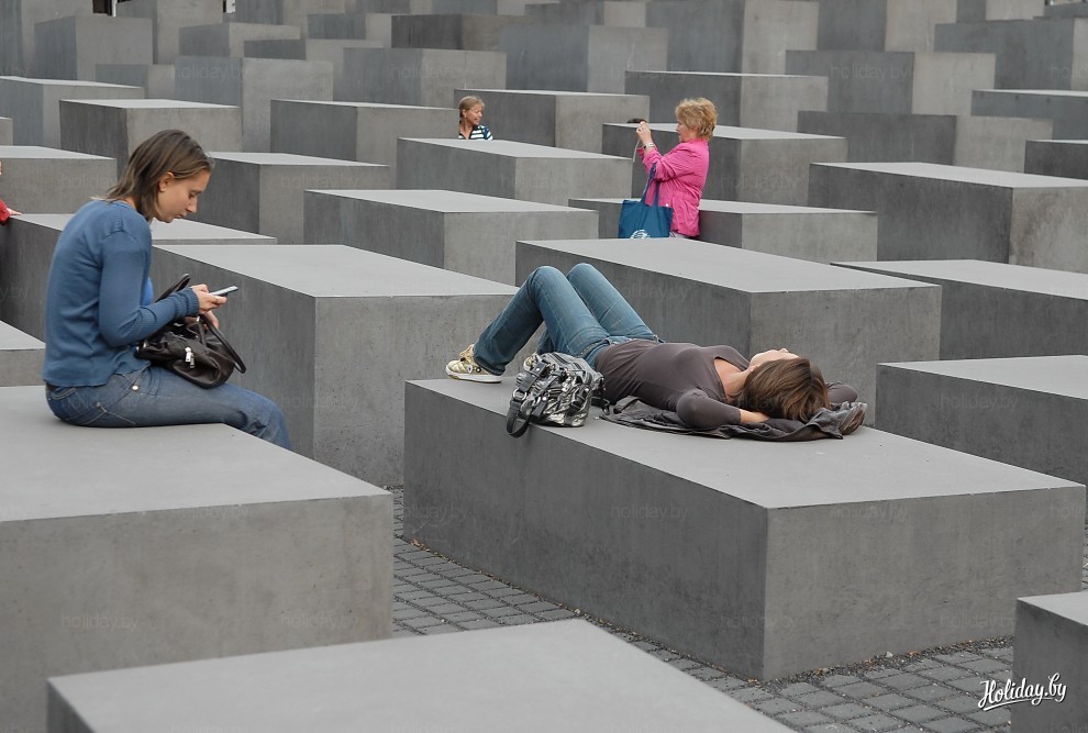 Один из самых впечатляющих памятников убитым евреям Европы. Сама скульптура представляет собой множество геометрически расположенных бетонных блоков. Официального смысла такого расположения не существует – здесь каждому предоставляется возможность почувствовать что-то свое.
