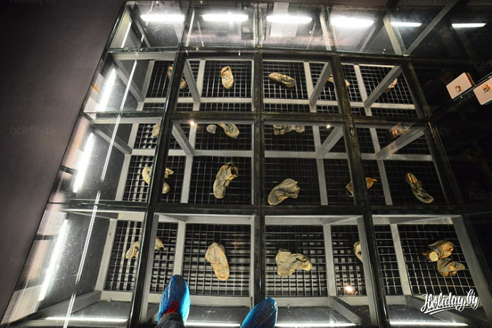 Перед входом в помещения с экспозициями мы увидели, ни за что не поверите, древнюю печь, которая была также найдена тут при раскопках. В ней приблизительно в конце XVII века делали кирпичи для Собора Святых Петра и Павла. Создатели музея были в растерянности. Что делать с находкой? Вынести ее из здания невозможно, а в мемориальном комплексе должны рассказывать не о старинном ремесле, а о тоталитаризме.
