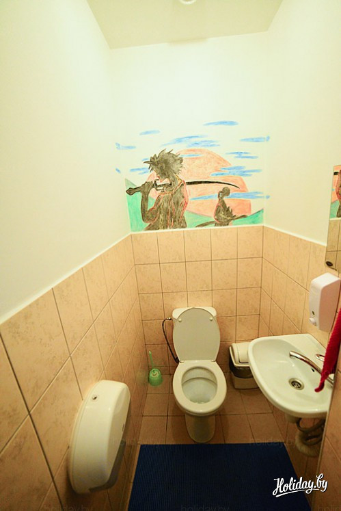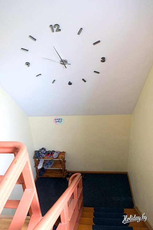 На дверях комнат жильцы оставляют свои благодарности и пожелания хозяевам. Здесь много забавных рисунков и добрых слов. На втором этаже обратите внимание на потолок. Там висят оригинальные часы. Согласитесь, непривычно видеть их в таком месте.